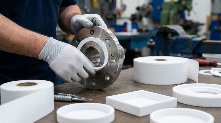 في جوهرها، تنبع فوائد تركيب حشوات PTFE الموسعة (ePTFE) من خاصيتين أساسيتين للمادة: ليونتها الاستثنائية ودرجة انضغاطها العالية. يسمح هذا المزيج الفريد بقصها وتشكيلها بسهولة يدوياً في الموقع، وفي الوقت نفسه تتكيف تمامًا مع أسطح الشفاه غير المنتظمة أو التالفة بأقل جهد، مما يخلق إغلاقًا موثوقًا حيث تفشل المواد الأكثر صلابة.