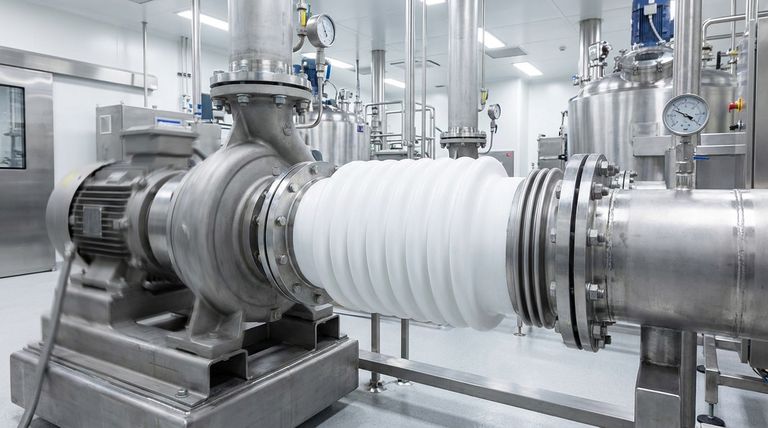 تنقل المضخة أو المحرك العامل الاهتزازات مباشرة إلى أي أنبوب صلب متصل. يخلق منفاخ PTFE، بمرونته المصممة هندسيًا، نقطة امتصاص تعزل نقل هذه الطاقة.